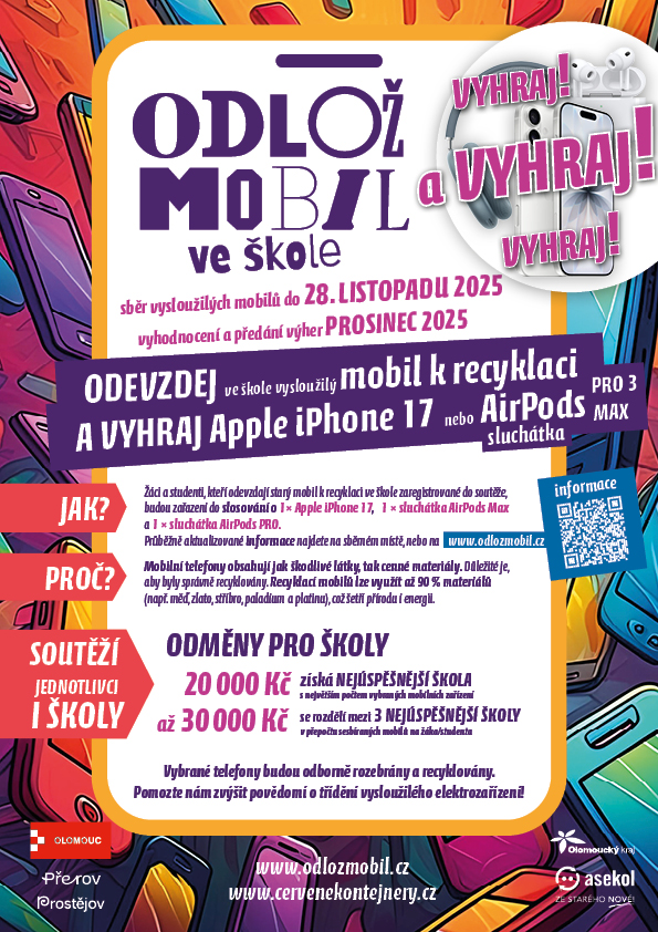 Každý soutěžící student, který odevzdá správně označený vysloužilý mobilní telefon (s vyplněným kuponem), bude zapojen do soutěže o:
